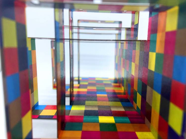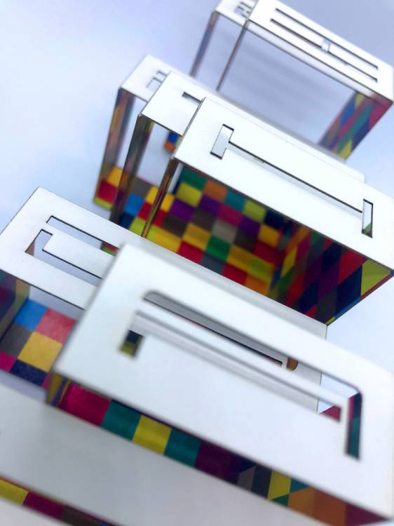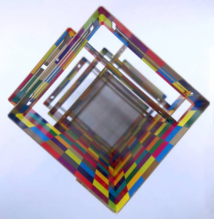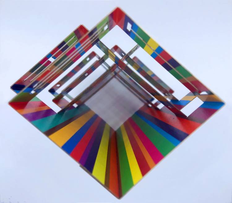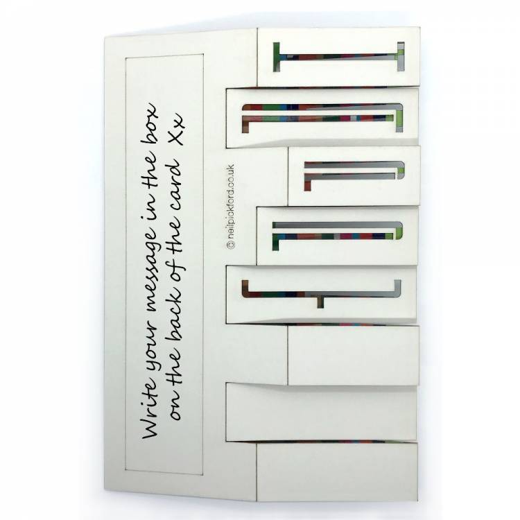 150x100mm (6x4") white card with highly unusual fold pattern showing multi-coloured pattern printed inside - choice of two patterns