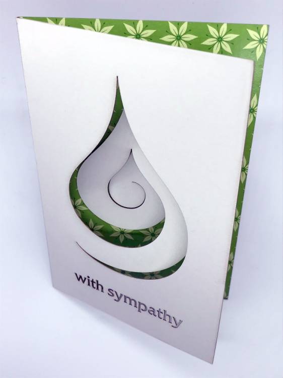 150x100mm (6x4") white card with spiral flame cut design showing green lily pattern printed inside (Other patterns/colours available on request)