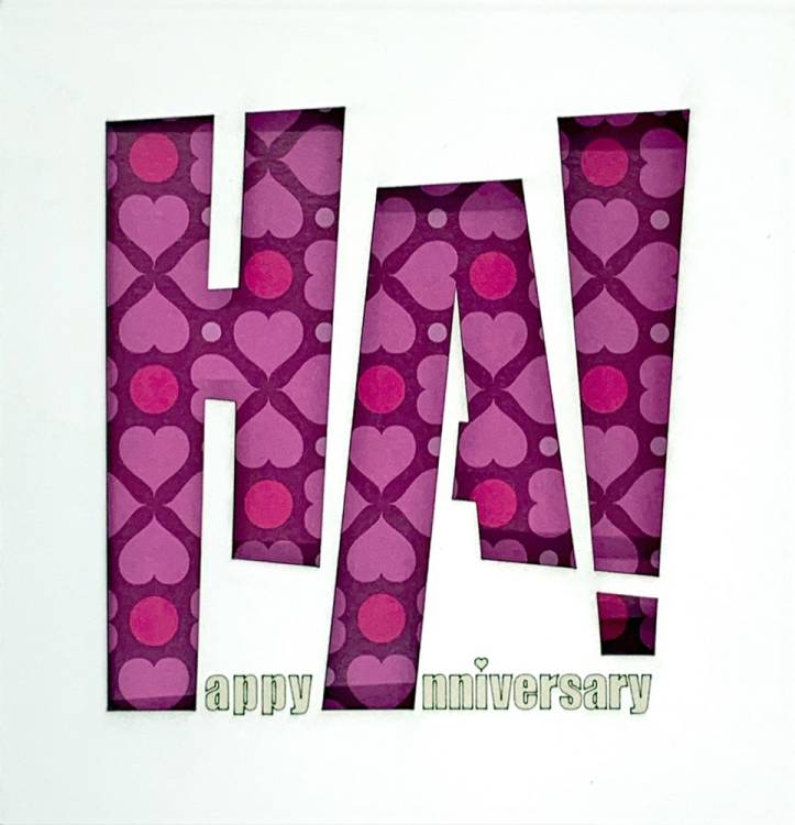 125mm (5") square white card with a Happy Anniversary! cut design showing flower pattern printed inside - choose from 7 different patterns