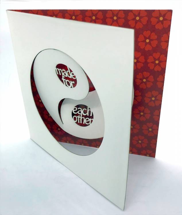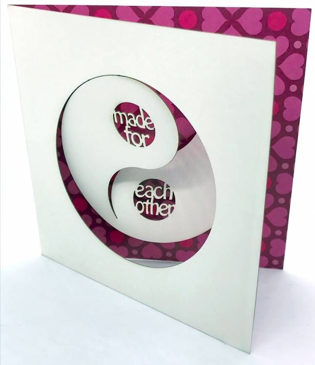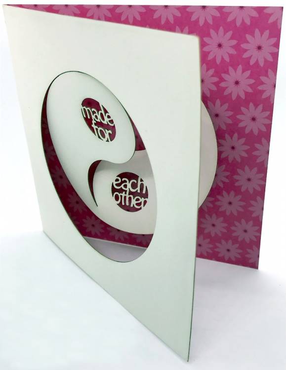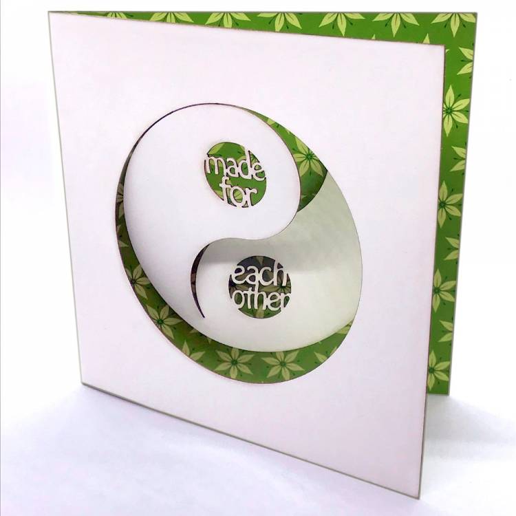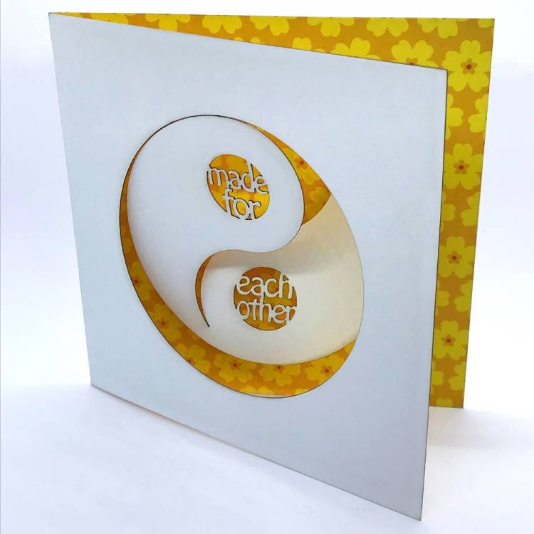 125mm (5") square white card with a Yin Yang cut design showing flower pattern printed inside - choose from 7 different patterns